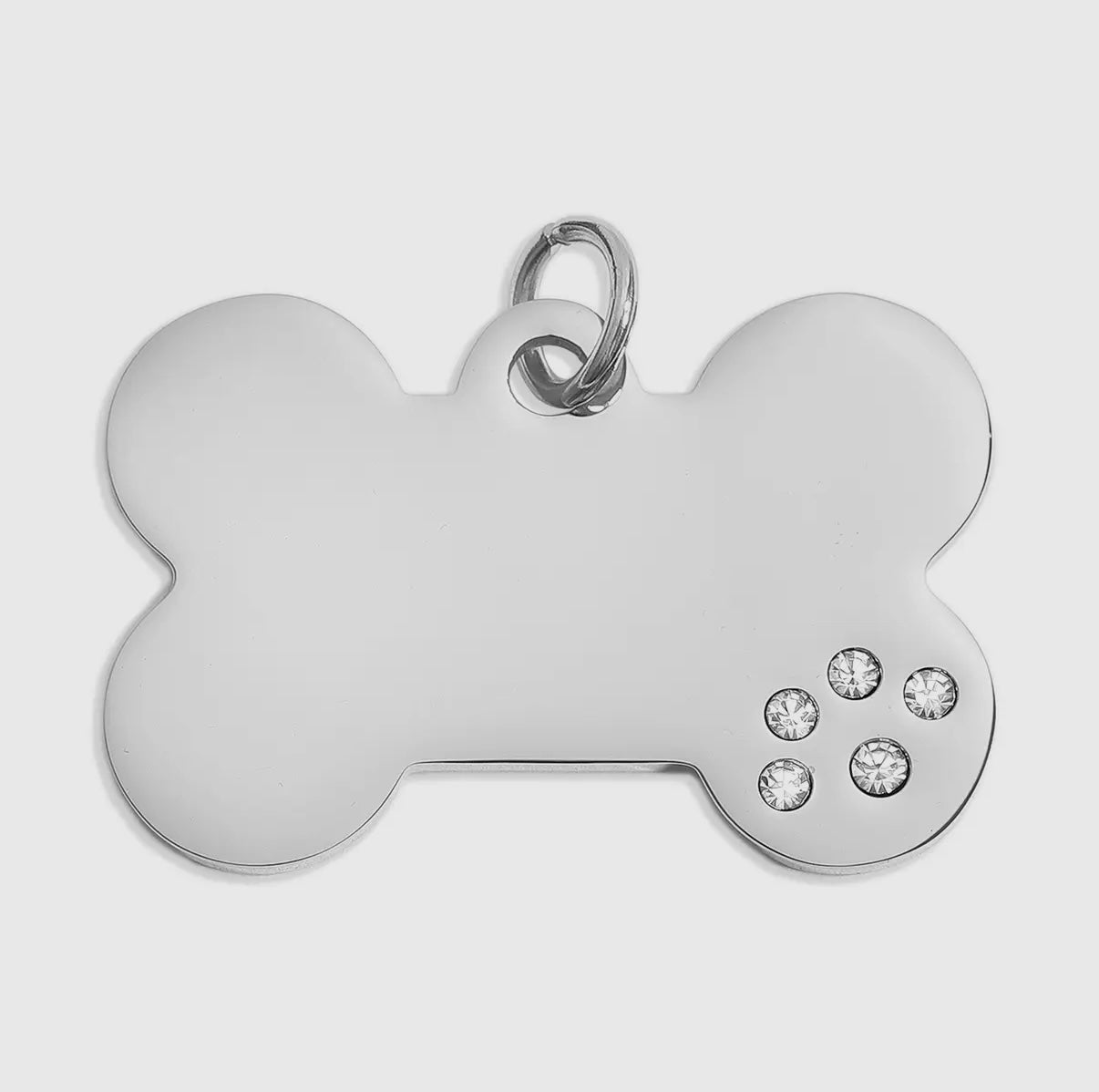 Verschönern Sie den Stil Ihres Hundes mit dieser eleganten Hundemarke, die in der Ecke funkelnde Zirkonia-Steine trägt. Ideal für Haustiere, die gerne glänzen – und gleichzeitig sicher bleiben.