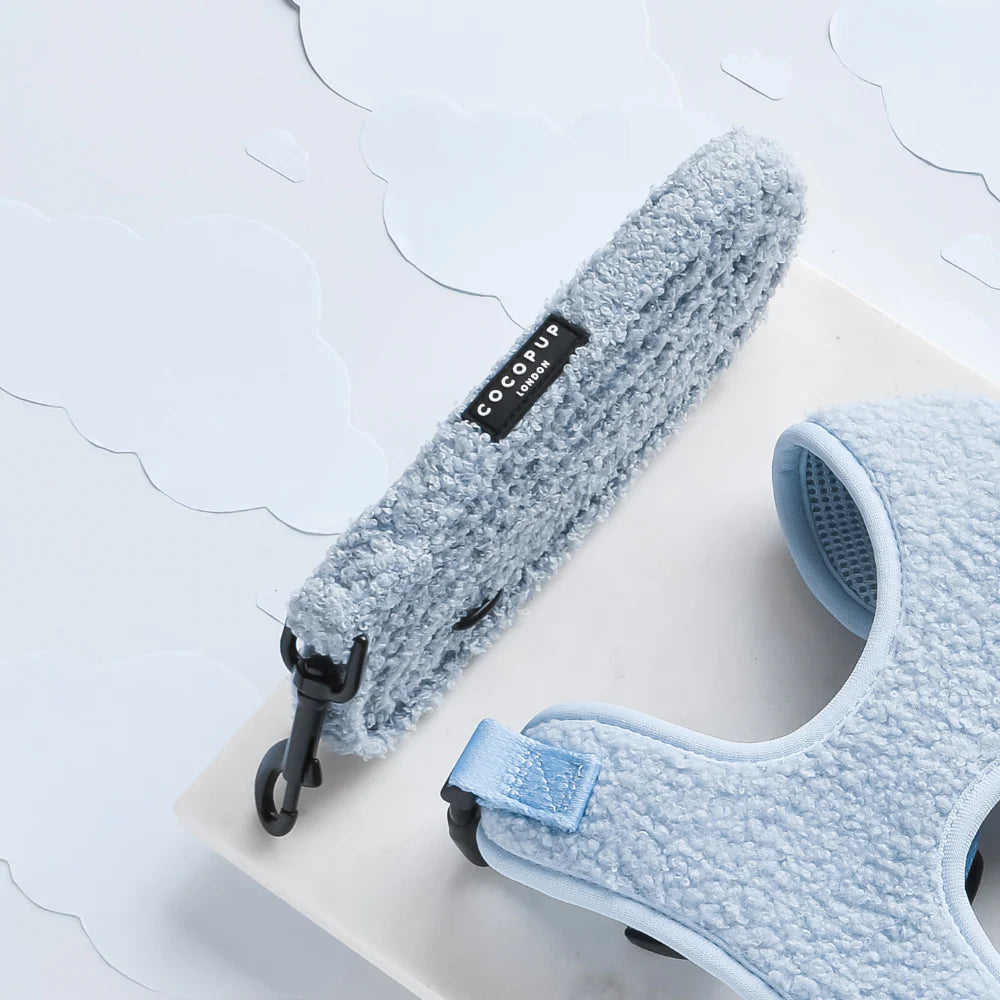 Mach dich bereit, dass dein Hund beim Spaziergang in einen kleinen Tagtraum versinkt! Die kuschelige, weiche Leine in Babyblau ist die perfekte, niedliche Ergänzung für die „Pupdrobe“ deines Vierbeiners.