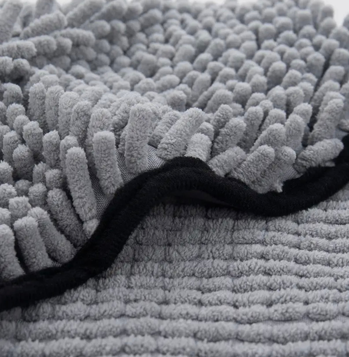 Trockne deinen Vierbeiner nach dem Baden, Schwimmen oder Spaziergang im Regen im Handumdrehen! Das hochwertige Mikrofaser-Chenille-Gewebe ist weich, super saugfähig und trocknet schnell. Es nimmt bis zu 6-mal mehr Wasser auf als herkömmliche Handtücher und sorgt dafür, dass Fell, Pfoten und Körper deines Hundes effektiv trocken werden.