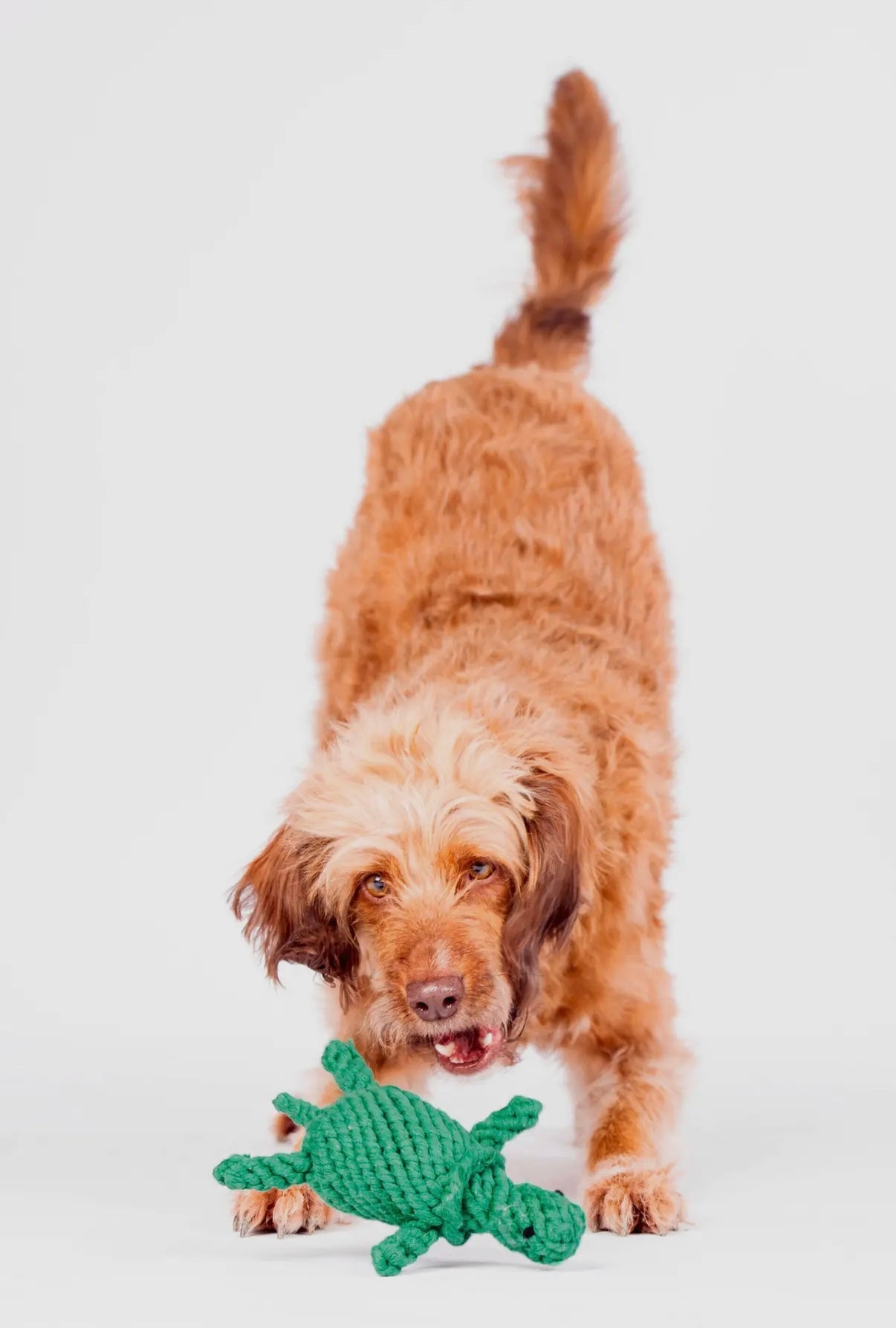 „Tina Turtle“ ist die Powerfrau unter den Hundespielzeugen. Ob Kauen, Werfen oder Apportieren – sie überzeugt mit Energie, Ausdauer und Charme. Mit ihrem grünen Panzer und der lebendigen Persönlichkeit bringt Tina jede Spielrunde zum Strahlen und begeistert Hunde mit ihrem natürlichen Spieltrieb.