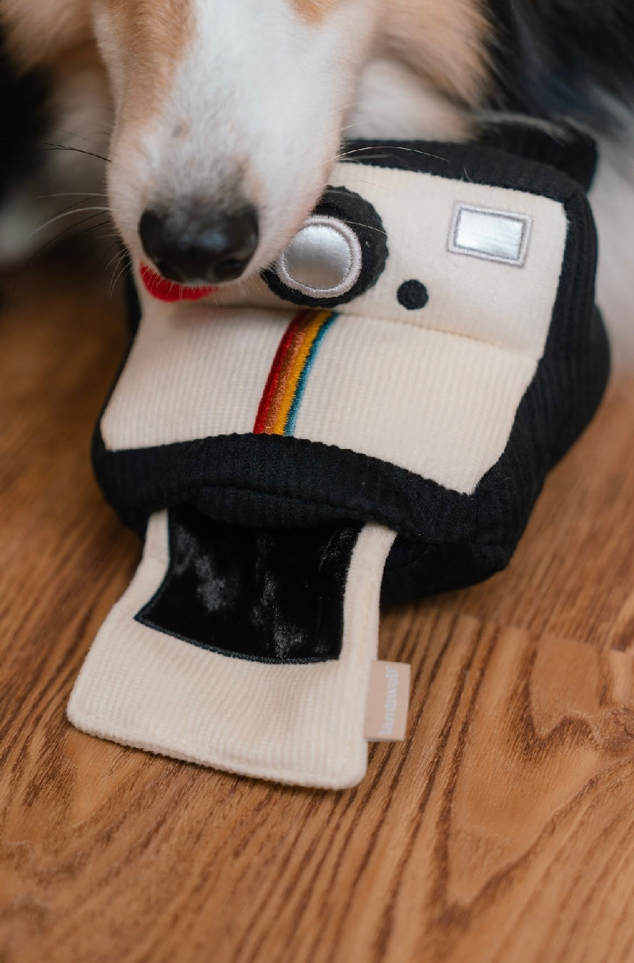 Say cheese! Mit der Instant Camera von Lambwolf können Sie die verspielte Seite Ihres Welpen einfangen. Dieses entzückende, interaktive Spielzeug ist mit zerknittertem "Fotopapier" und einem versteckten Leckerlifach im Kameragehäuse gestaltet, das die Snackzeit in eine unterhaltsame Schatzsuche verwandelt. Schnappen, schnüffeln und genießen Sie den Spaß - es ist eine perfekte Art, Ihren pelzigen Freund zu unterhalten!