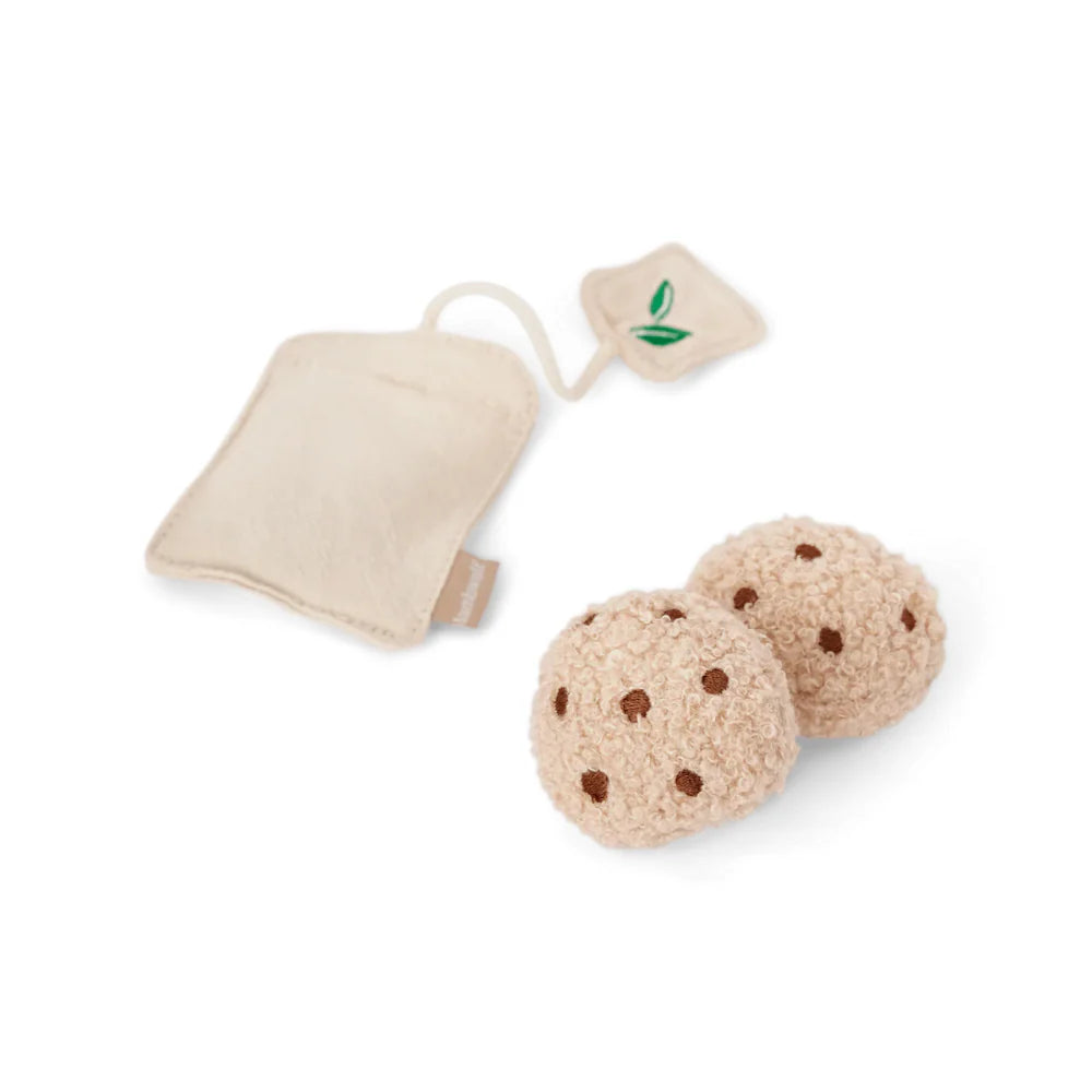 Mit TEATIME verwöhnst du deinen Katzenfreund mit einer besonders süßen Spielidee. Das Set besteht aus einem mit Katzenminze gefüllten Teebeutel und zwei weichen Plüschkeksen, die jeweils eine versteckte Glockenkugel enthalten – perfekt für neugierige Pfoten.