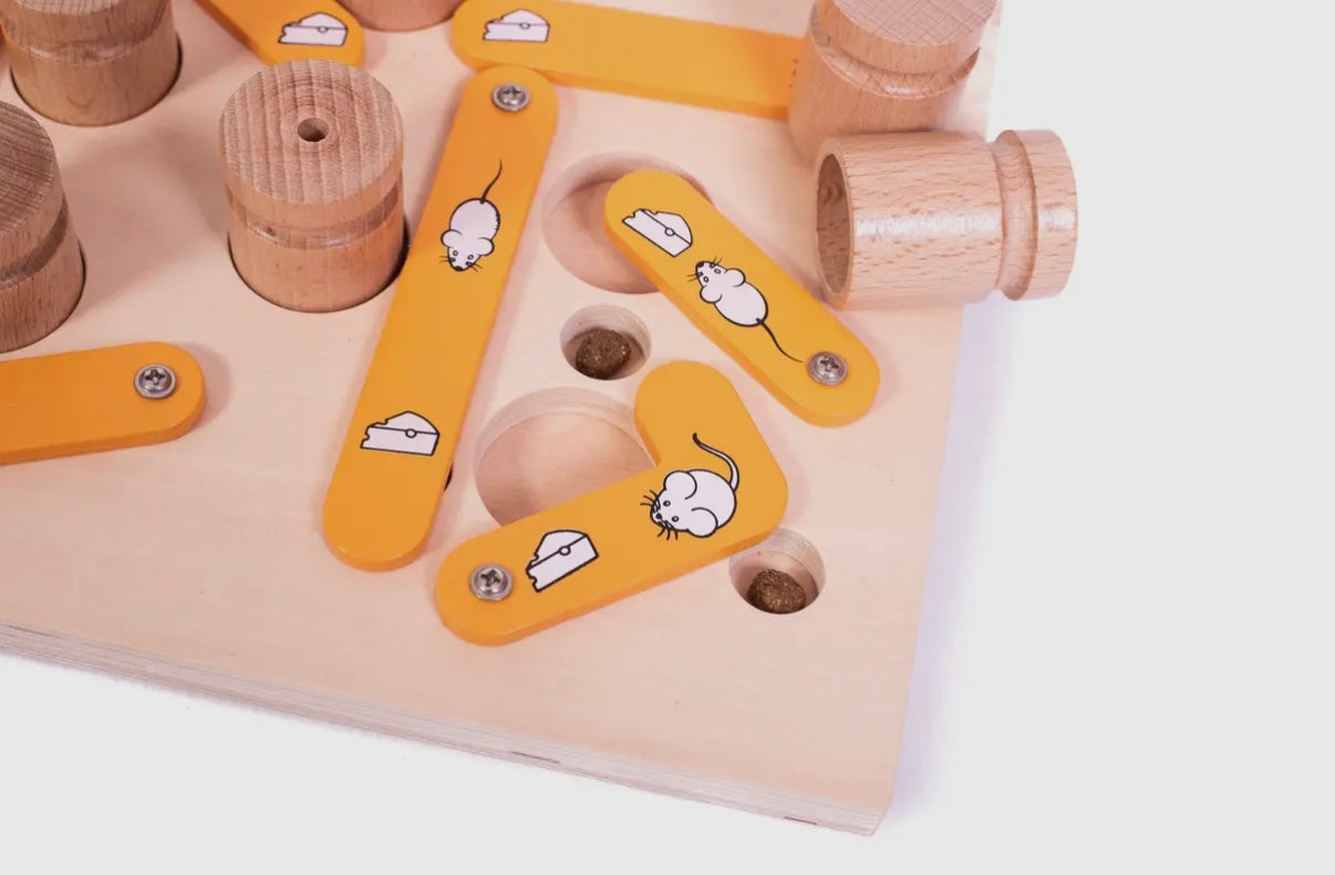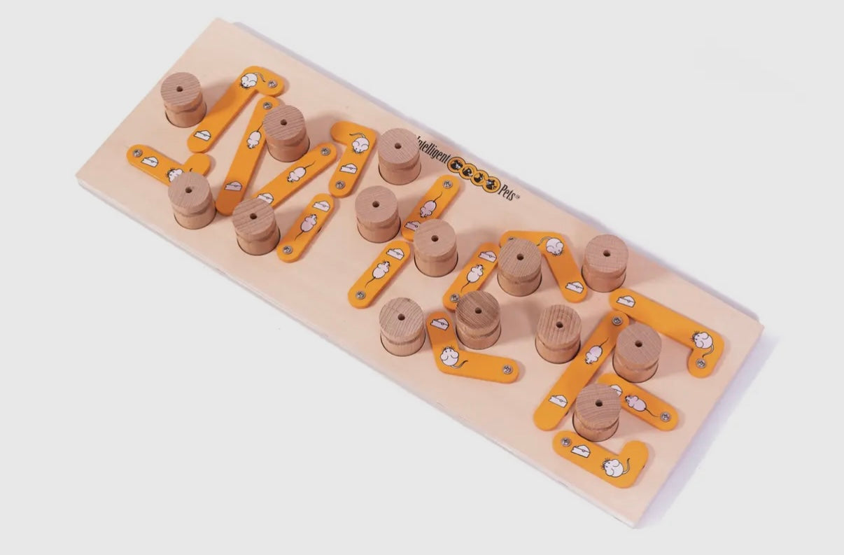 MICE ist ein abwechslungsreiches Geschicklichkeitsspiel aus zertifiziertem Holz, das Hunde, Katzen und andere kleine Tiere mental fordert und artgerecht beschäftigt. Die Buchstaben bestehen aus einzelnen beweglichen Teilen, unter denen trockene Leckerlis versteckt werden. Je nach Aufbau kann der Schwierigkeitsgrad von 1 bis 3 Pfoten variiert werden – zusätzliche Walzen erhöhen die Herausforderung.