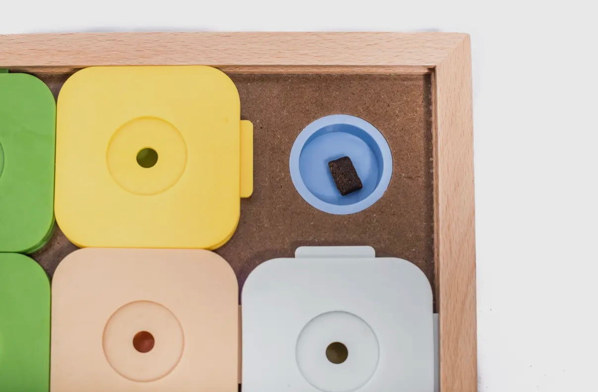 Dog’ SUDOKU® ist ein intelligentes Such- und Schiebespiel, bei dem dein Hund versteckte Leckerlis durch Verschieben von 15 Spielsteinen finden muss. Mit insgesamt 16 Verstecken bietet das Spiel zahlreiche Kombinationsmöglichkeiten und fördert Konzentration, Geruchssinn und natürliche Instinkte.