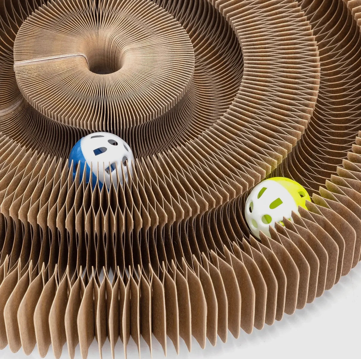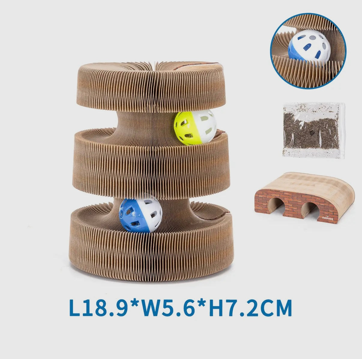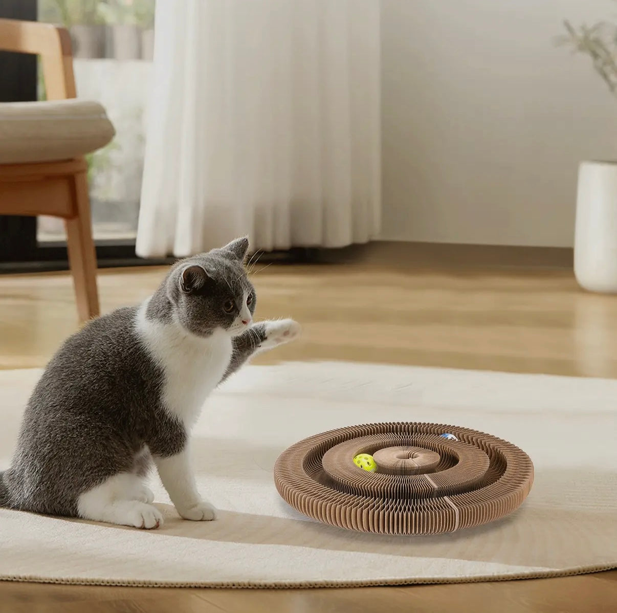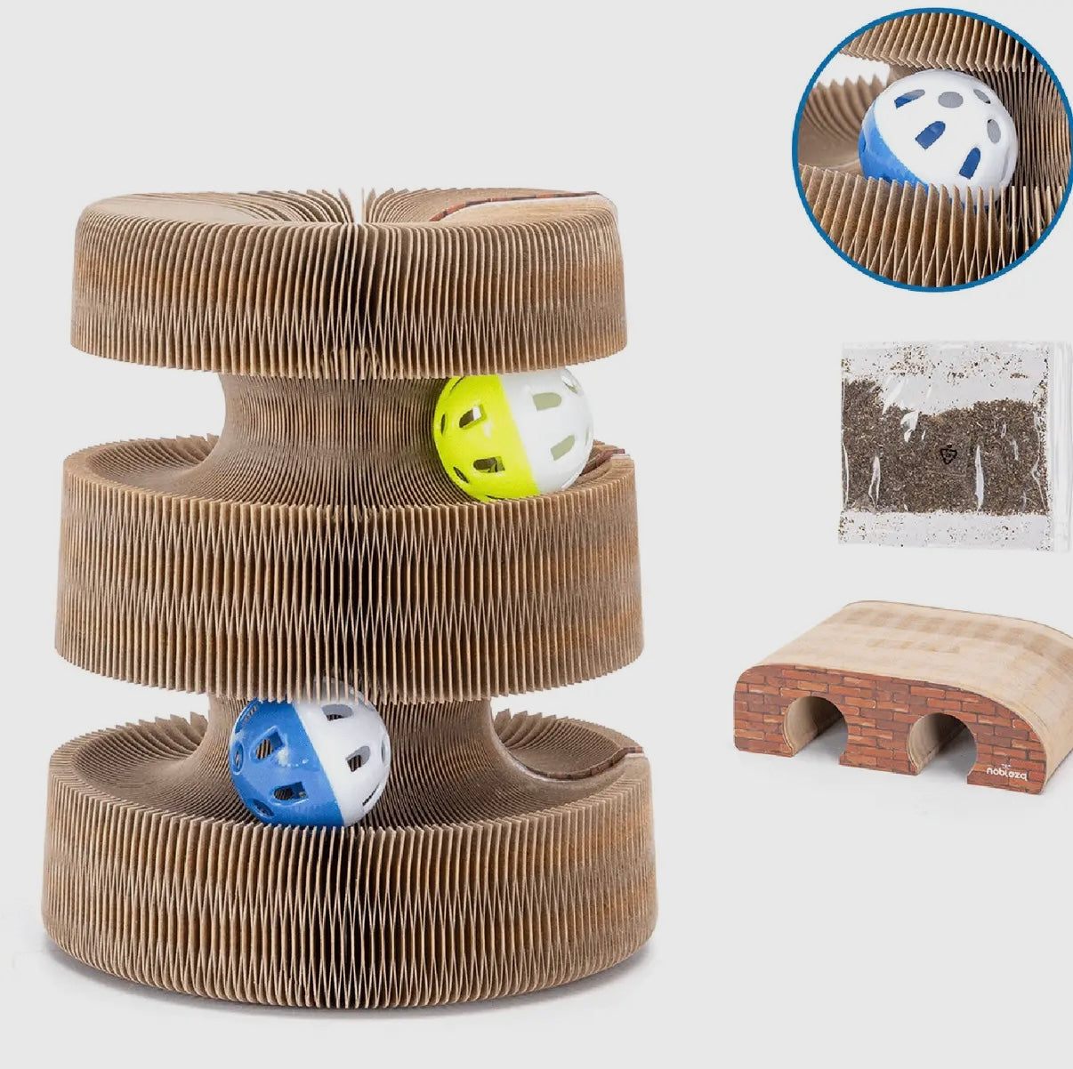 Das innovative Kratzbrett von Nobleza bietet Katzen endlosen Spielspaß und gleichzeitig Pflege für die Krallen. Dank der Ziehharmonika-Struktur kann es in verschiedene Formen gebracht werden – flach, als Tunnel oder Kreis – und passt sich so den Vorlieben deiner Katze an. Zwei integrierte Rillen mit beweglichen Plastikbällen fördern den Jagdinstinkt und sorgen für stundenlange Beschäftigung. Hergestellt aus robustem Material für langlebiges Kratzen, leicht zusammenfaltbar und platzsparend. Ideal für aktive Wohnungskatzen, die spielen, klettern und ihre Krallen auf natürliche Weise pflegen möchten.