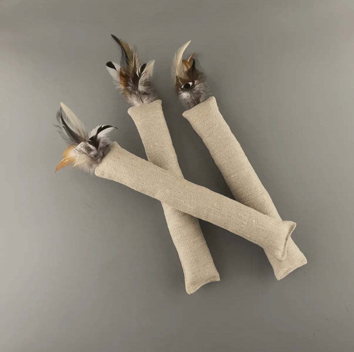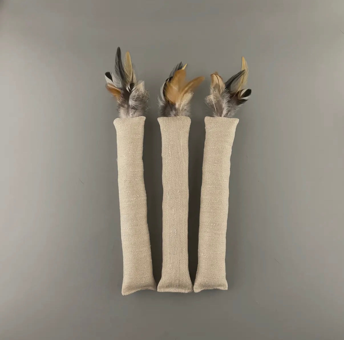 Katzenspielzeug aus Hanfstoff und Federn mit Katzenminze