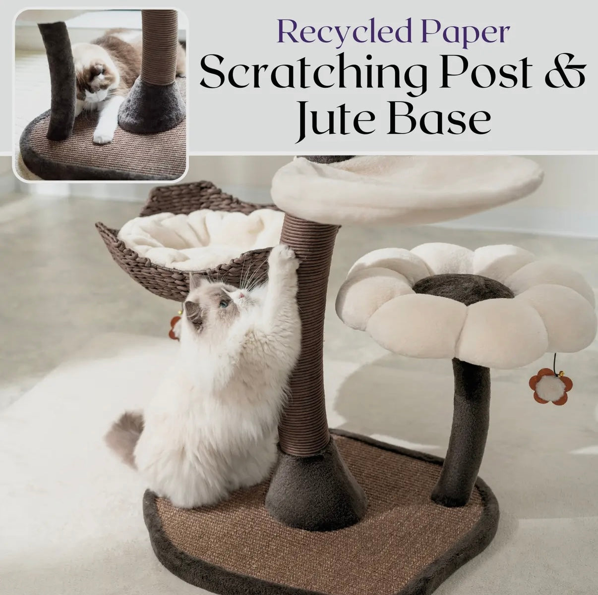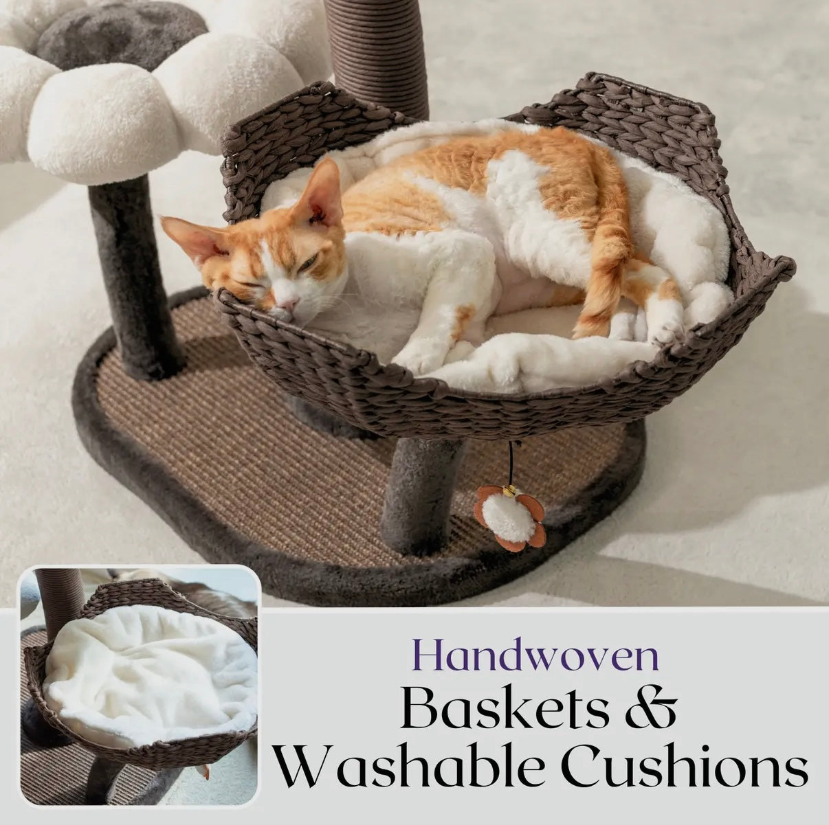 Der Blossom Kratzbaum vereint stilvolles Blumendesign mit modernem Minimalismus und passt perfekt in jede Wohnkultur. Er wurde speziell für große und ältere Katzen entwickelt und bietet Komfort, Sicherheit und Spielspaß in einem.