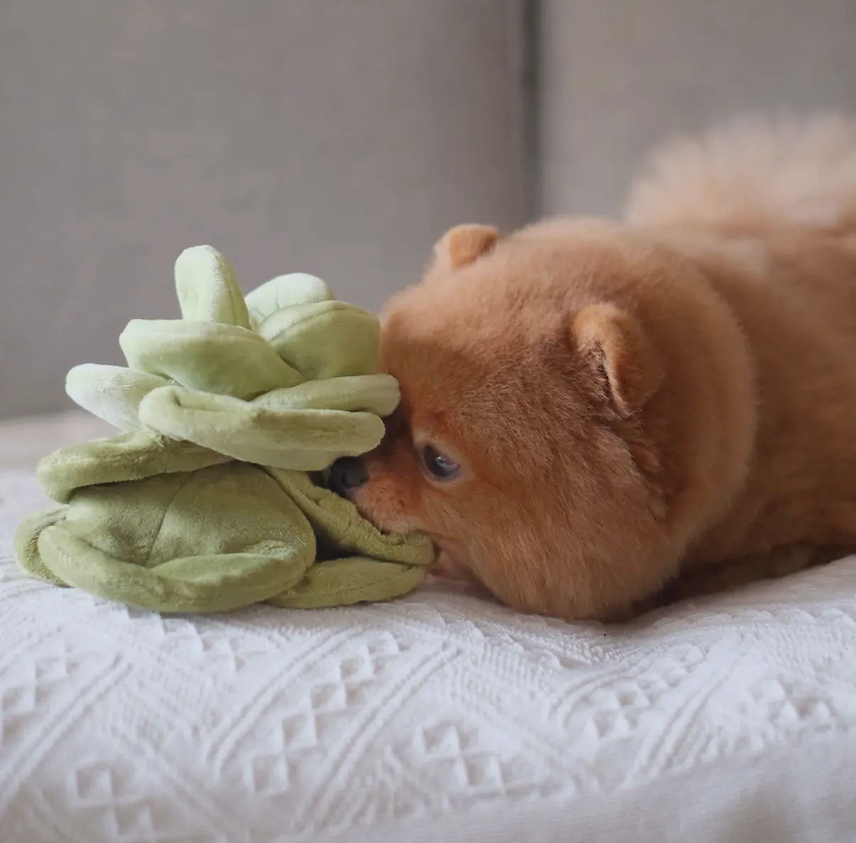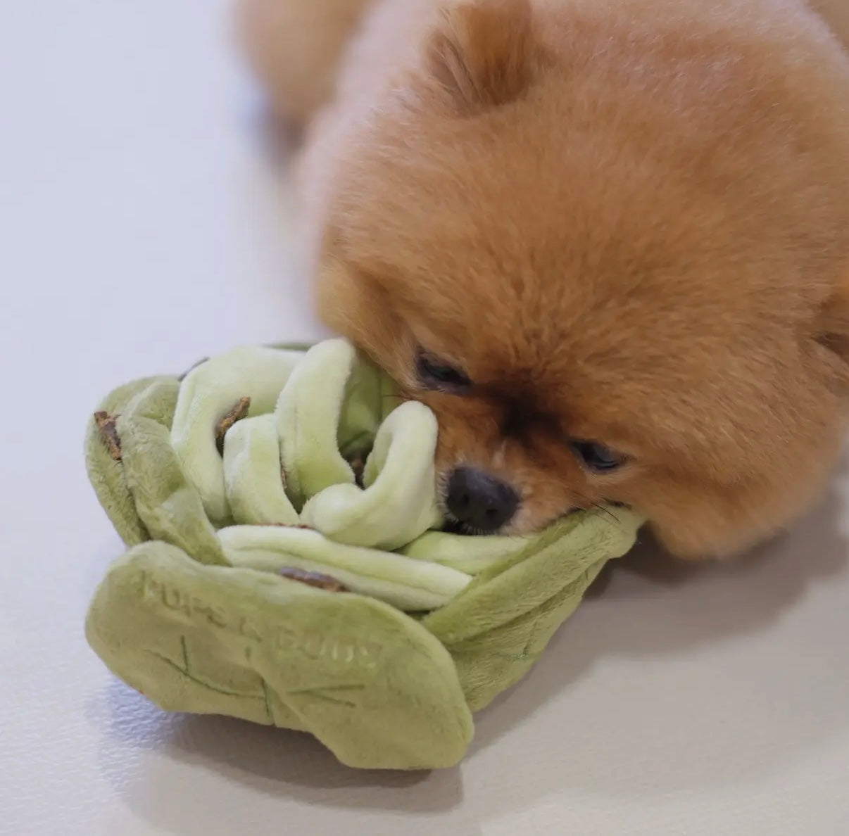 Der Snuffle Cabbage ist ein liebevoll gefertigtes Schnüffelspielzeug in Form eines kleinen Kohlkopfes (Ø 15 cm x 9 cm Höhe) – perfekt für Hunde, die gerne suchen und schnüffeln. Die vielen übereinanderliegenden, zerknitterten „Blätter“ bieten zahlreiche Versteckmöglichkeiten für Leckerlis und sorgen für langanhaltende Beschäftigung sowie mentale Stimulation.