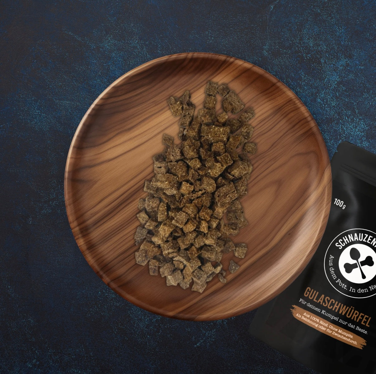 Unsere Gulaschwürfel bestehen zu 100 % aus Rindfleisch – mehr braucht es nicht! Ideal als Belohnung beim Training oder einfach zwischendurch. Mit ca. 1×1 cm Größe lassen sie sich perfekt portionieren und sorgen für 100 % Geschmackserlebnis.