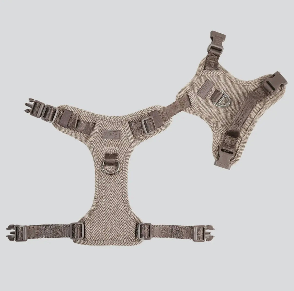 - Zwei D-Ringe für Front- oder Rücken-Leinenbefestigung