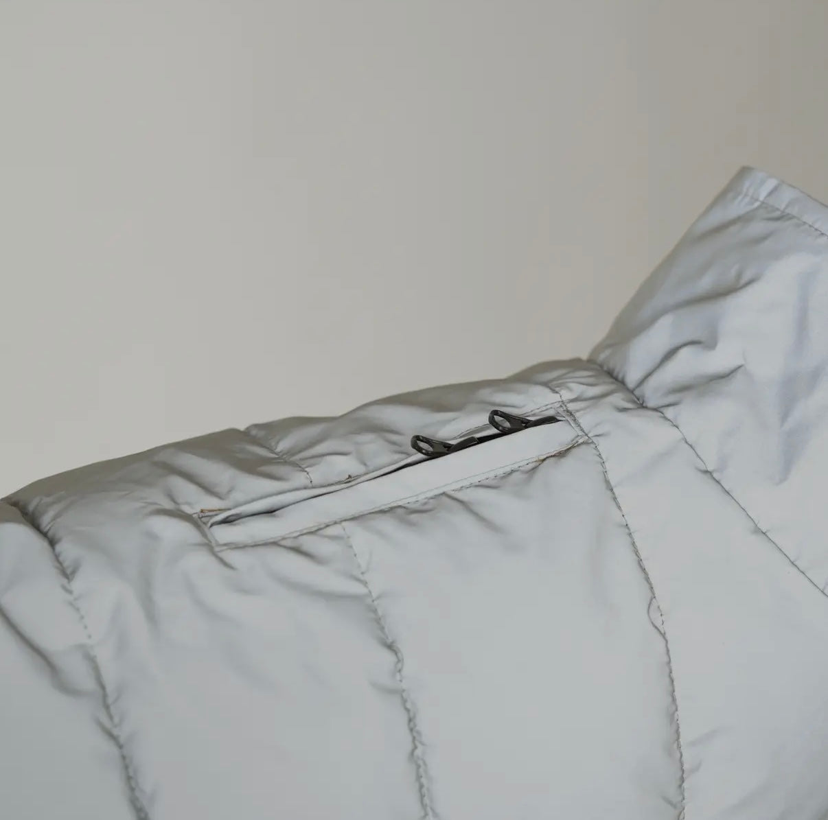 Warmer Wintermantel mit weicher Daune und Fleece-Futter, der Komfort, Schutz und Sichtbarkeit kombiniert. Die wasserabweisende, reflektierende Außenschicht hält Ihren Hund trocken und sichtbar bei schlechten Lichtverhältnissen. Einfach anzulegen dank breiter Klettverschlüsse und verstellbarem Kordelzug – ohne Pfoten durch Löcher führen zu müssen. Optional sind elastische Beingurte für zusätzliche Stabilität.